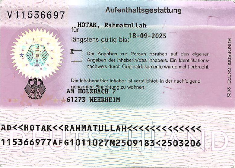 Ausweise /Pässe (Vorgänge & aktueller Sachstand) von Rahmatullah Hotak